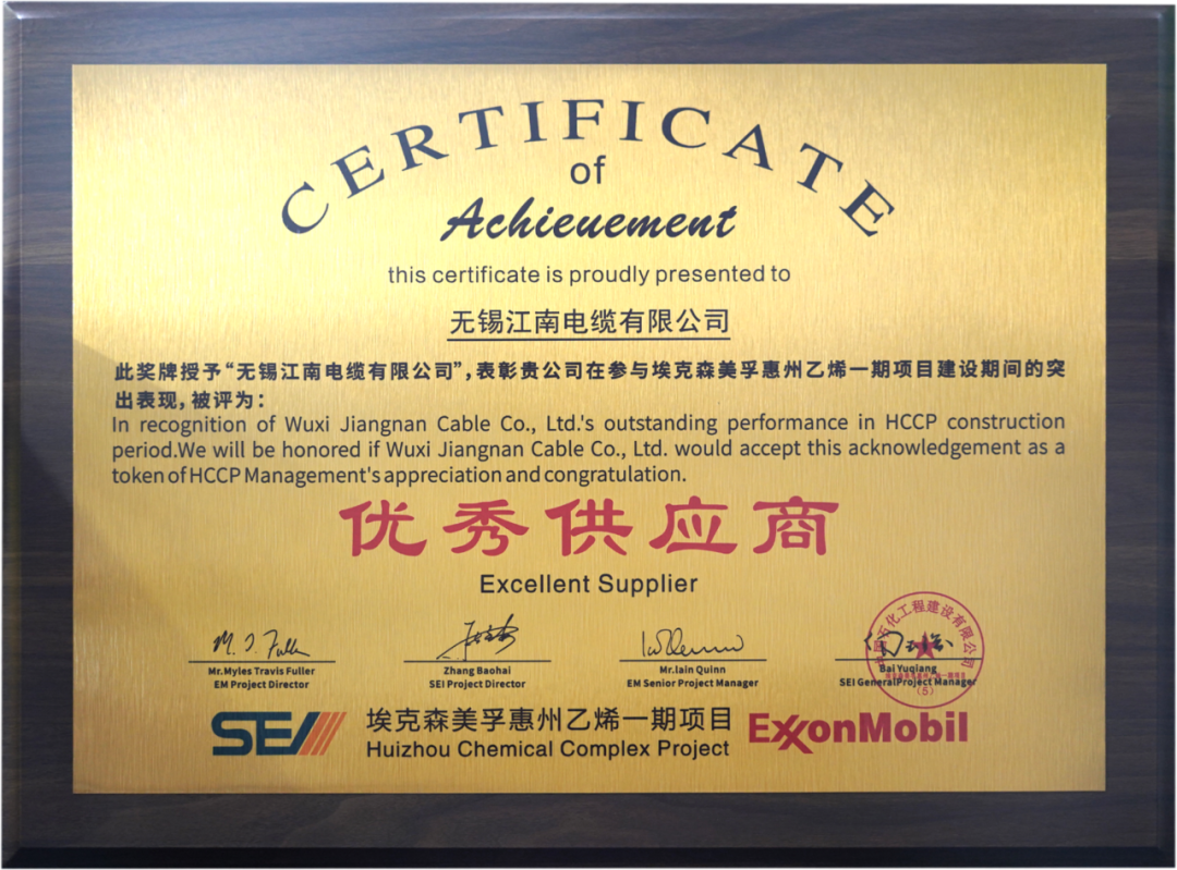 項目進(jìn)程中,埃克森美孚對供應(yīng)商進(jìn)行了高標(biāo)準(zhǔn)、多維度的嚴(yán)格考核,考核顯示:江南電纜產(chǎn)品質(zhì)量優(yōu)異、技術(shù)團(tuán)隊專業(yè)、服務(wù)機(jī)制長效,表現(xiàn)出色、實力認(rèn)可。